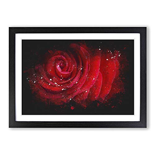 Big Box Art Dewdrops Upon a Red Rose Paint Splash Framed Wall Art Picture Print Ready to Hang, Black A2 (62 x 45 cm)