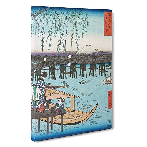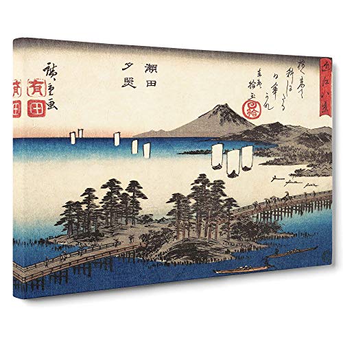 Big Box Art A Sunset at Seta by Utagawa Hiroshige Canvas Wall Art Framed Picture Print, 30 x 20 Inch (76 x 50 cm), Beige, Brown, Grey, Blue, Red