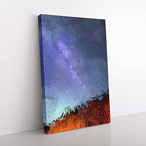Big Box Art A Forest Beneath The Stars in Abstract Canvas Wall Art Print Ready to Hang Picture, 76 x 50 cm (30 x 20 Inch), Grey, Lavender, Maroon, Blue, Red