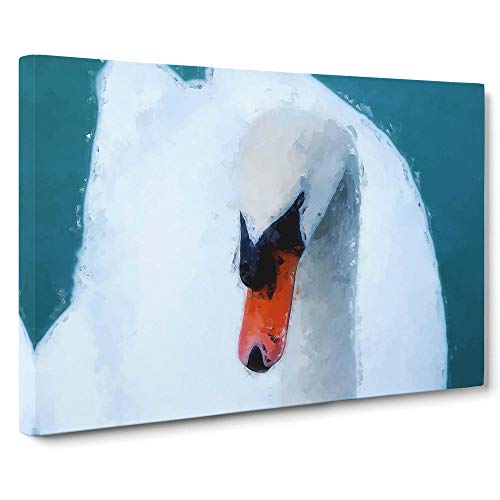 Big Box Art Swan Upon a Green Lake in Abstract Canvas Wall Art Framed Picture Print, 30 x 20 Inch (76 x 50 cm), White, Teal, Blue, Red