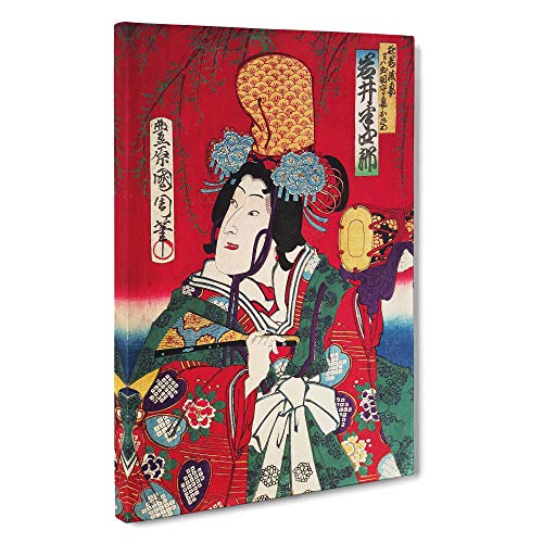 Big Box Art Lady with a Fan by Toyohara Kunichika Painting Canvas Wall Art Framed Picture Print, 30 x 20 Inch (76 x 50 cm), Red, Cream, Red, Black, Green