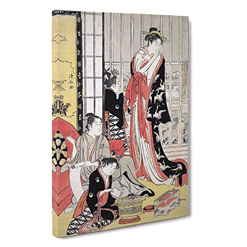 Big Box Art Interior of a Home by Torii Kiyonaga Painting Canvas Wall Art Framed Picture Print, 30 x 20 Inch (76 x 50 cm), Grey, Red, Black, Brown