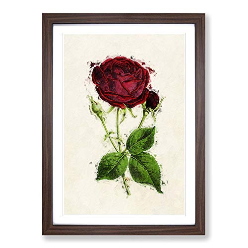 Big Box Art Illustration of a Red Prince Noir Rose Framed Wall Art Picture Print Ready to Hang, Walnut A2 (62 x 45 cm)