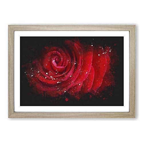 Big Box Art Dewdrops Upon a Red Rose Paint Splash Framed Wall Art Picture Print Ready to Hang, Oak A2 (62 x 45 cm)