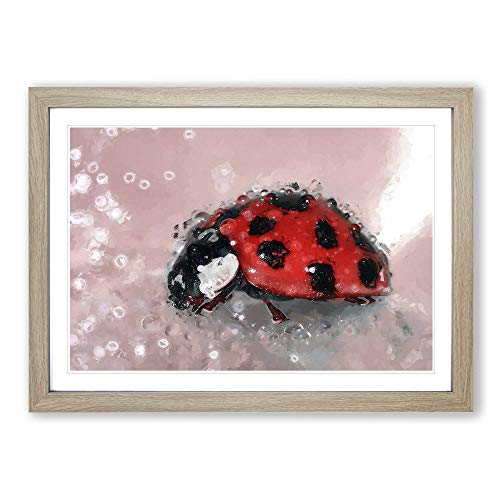 Big Box Art Red Ladybird Insect on a Pink Petal in Abstract Framed Wall Art Picture Print Ready to Hang, Oak A2 (62 x 45 cm)