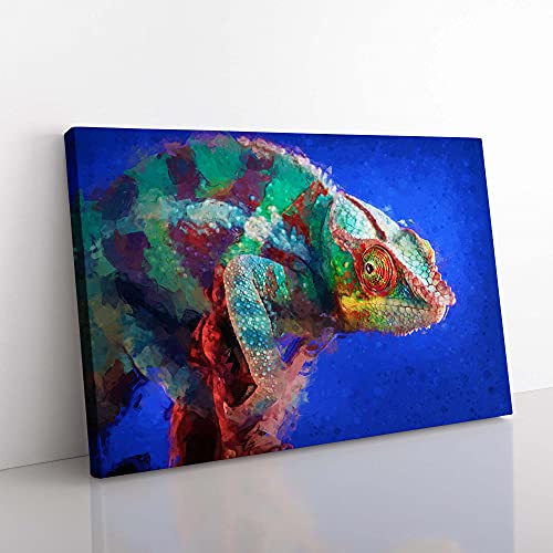 Big Box Art A Chameleon in Abstract Canvas Wall Art Print Ready to Hang Picture, 76 x 50 cm (30 x 20 Inch), Blue, Violet, Green, Red, Grey