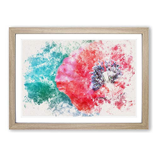 Big Box Art Eye of a Red Poppy Flower Watercolour Framed Wall Art Picture Print Ready to Hang, Oak A2 (62 x 45 cm)