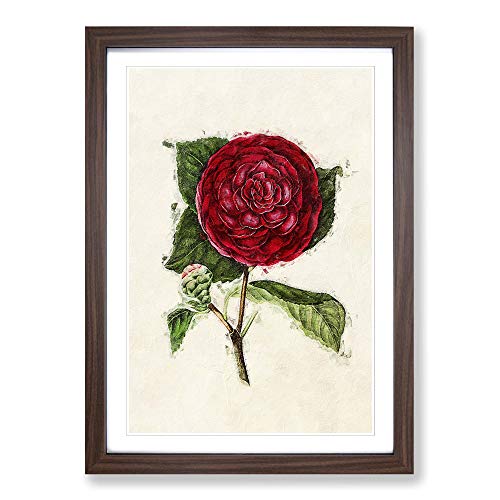 Big Box Art Illustration of a Red Japanese Camellia Framed Wall Art Picture Print Ready to Hang, Walnut A2 (62 x 45 cm)