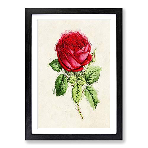 Big Box Art Illustration of a Red Rose Framed Wall Art Picture Print Ready to Hang, Black A2 (62 x 45 cm)