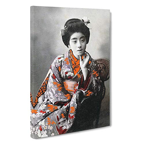 Big Box Art Portrait of a Geisha Painting Canvas Wall Art Framed Picture Print, 30 x 20 Inch (76 x 50 cm), Black, White, Grey, Red