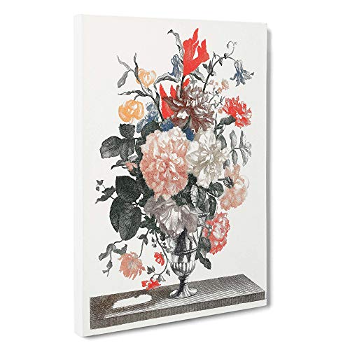 Big Box Art Flowers in a Glass Vase by Johan Teyler Canvas Wall Art Framed Picture Print, 30 x 20 Inch (76 x 50 cm), White, Grey, Green, Cream, Red