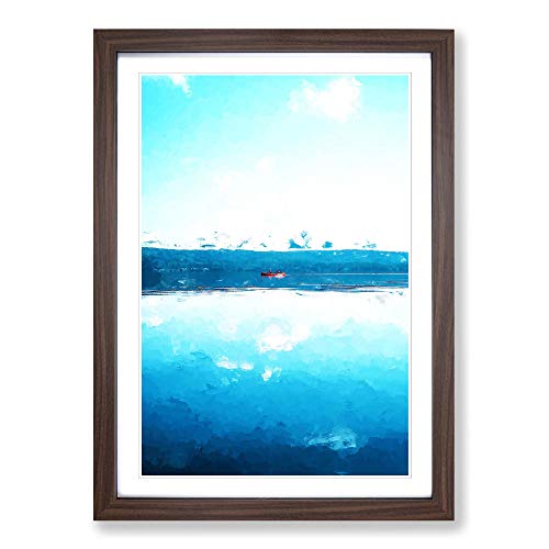 Big Box Art Red Kayak on a Lake in Sweden in Abstract Framed Wall Art Picture Print Ready to Hang, Walnut A2 (62 x 45 cm)