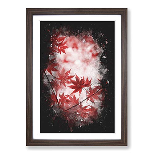 Big Box Art Red Leaves of a Maple Tree Paint Splash Framed Wall Art Picture Print Ready to Hang, Walnut A2 (62 x 45 cm)