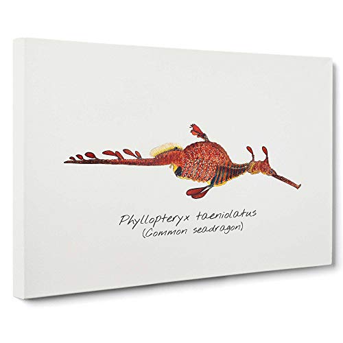 Big Box Art Illustration of a Common Seadragon by F.E. Clarke Canvas Wall Art Framed Picture Print, 30 x 20 Inch (76 x 50 cm), White, Red, Grey, Brown