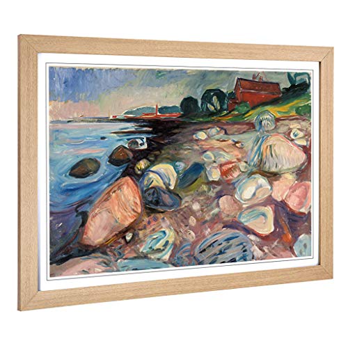 Big Box Art Framed Print of Edvard Munch The Shore with a Red House Design | Wall Art Picture | Home Decor for Kitchen, Living Room, Bedroom, Hallway, Oak, A2 / 24.5x18 Inch / 62x45cm