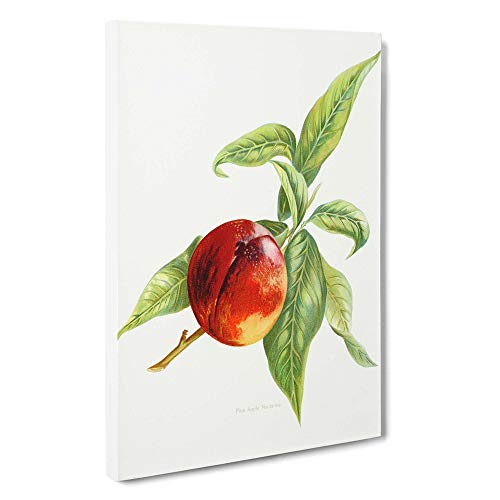 Big Box Art Vintage Peach Illustration of a Nectarine Canvas Wall Art Framed Picture Print, 30 x 20 Inch (76 x 50 cm), White, Green, Red