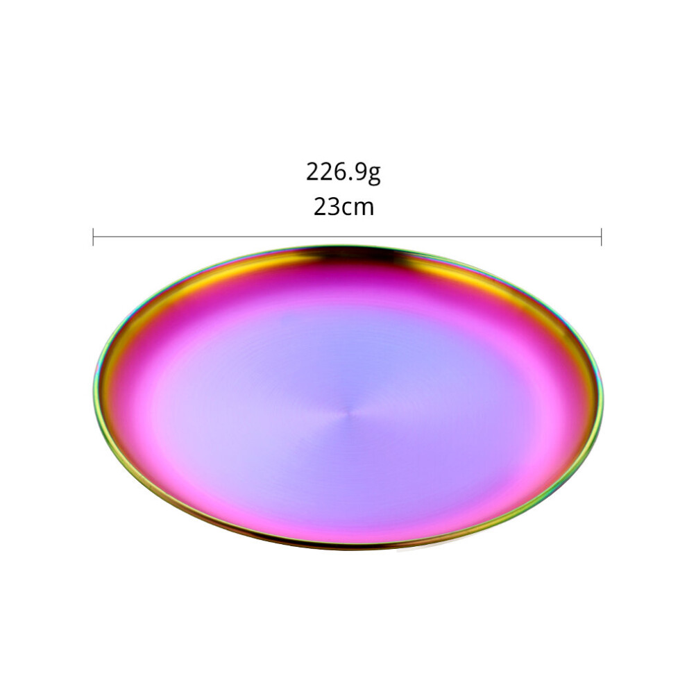 (a-rainbow NO.3 1PC) 1/4PCS European Style Dinner BBQ Plate Gold Dining Plate Serving Dishes Round Cake Tray Bakeware Steak Pan Kitchen Plates