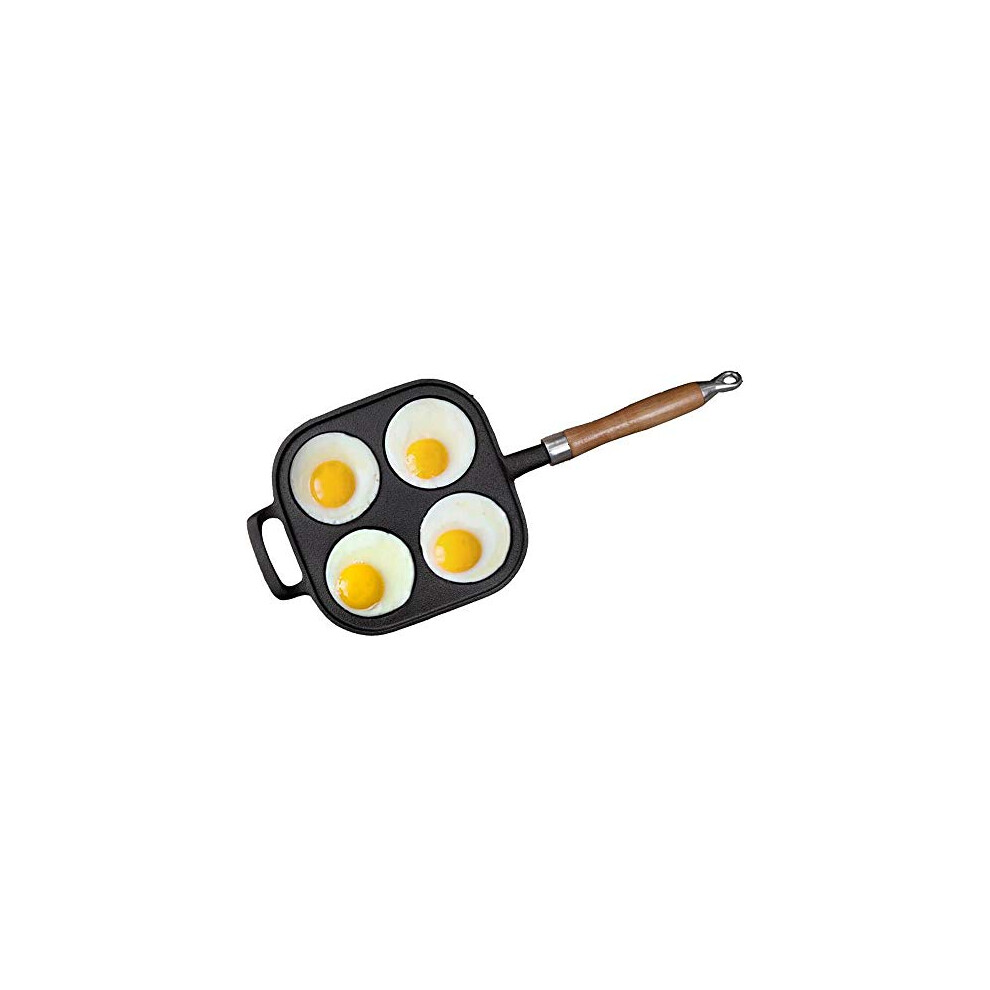 TAMUME Pre-Seasoned Cast Iron Pan Divided with 4 Deep Cups Mini Cake with Wooden Handle and a Helper Handle for Egg Poacher and Omelette (4-in-1)
