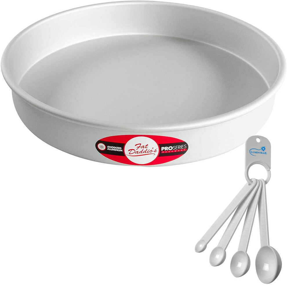Fat Daddios Round Cake Pan 12 x 2 Inch Silver with a Lumintrail Measuring Spoon Set