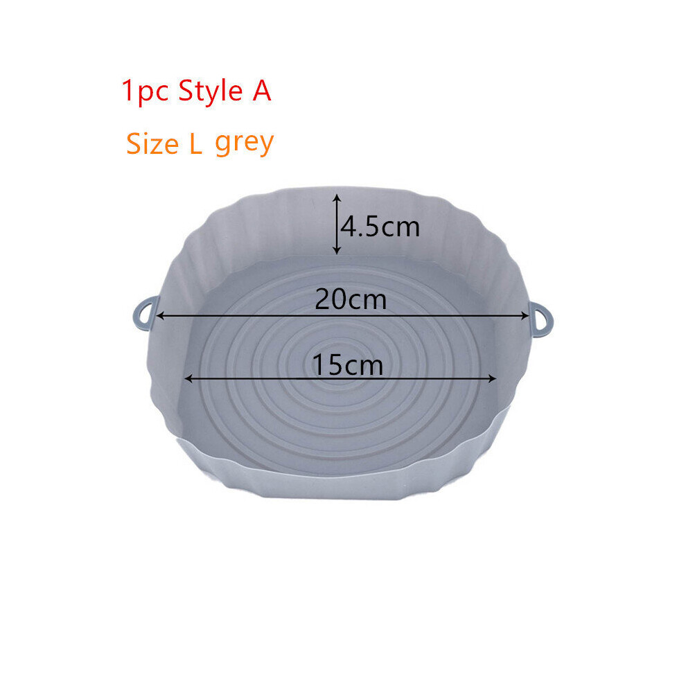 (Style A grey 20cm) Airfryer Silicone Basket Cake Pan Silicone Mold Airfryer Oven Baking Tray Pizza Fried Chicken Basket Reusable Pan Liner Pot