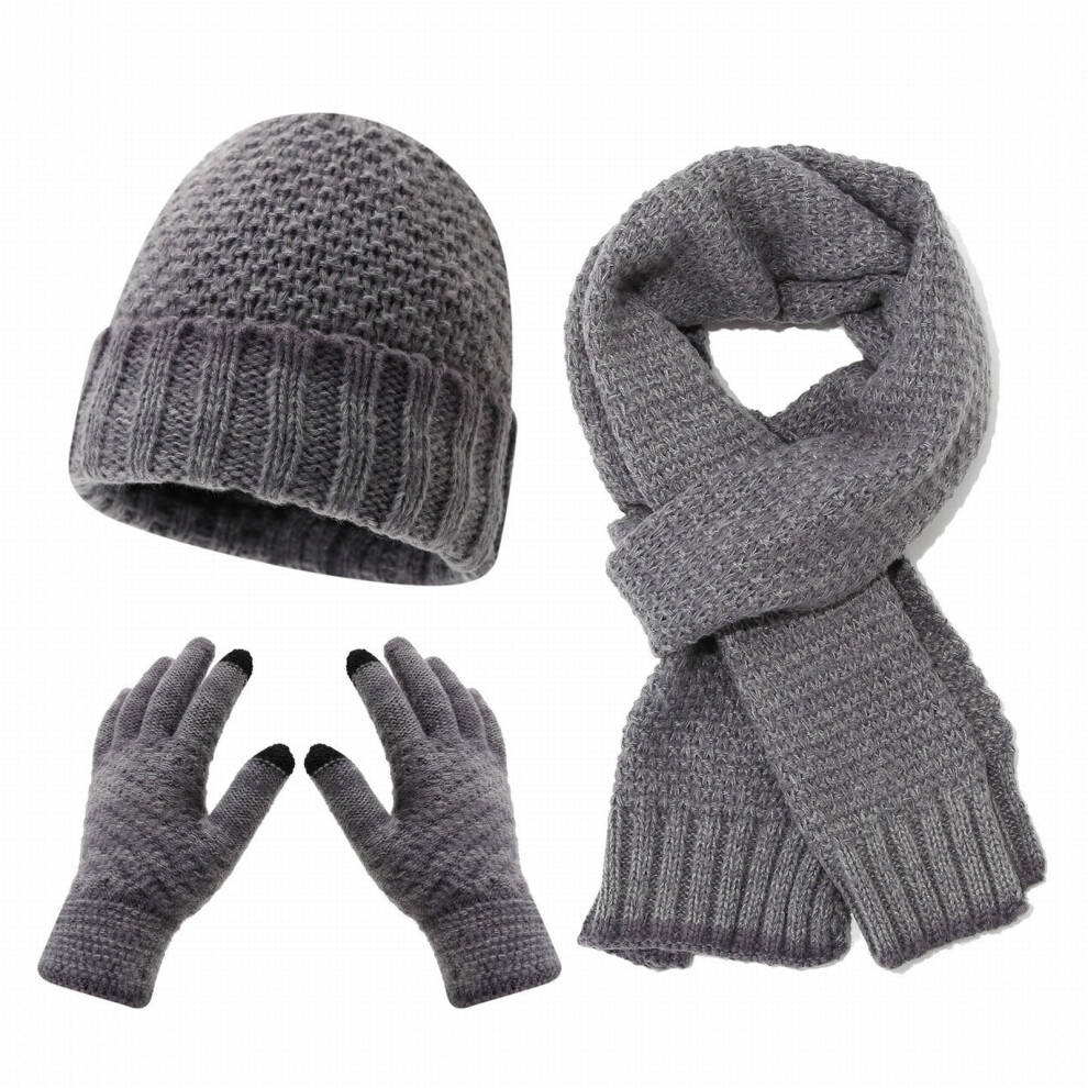 Women's 3-Piece Scarf, Hat & Gloves Set â Acrylic, Color-Blocked, Foldable, Gray â Compatible with Winter Outdoor Use