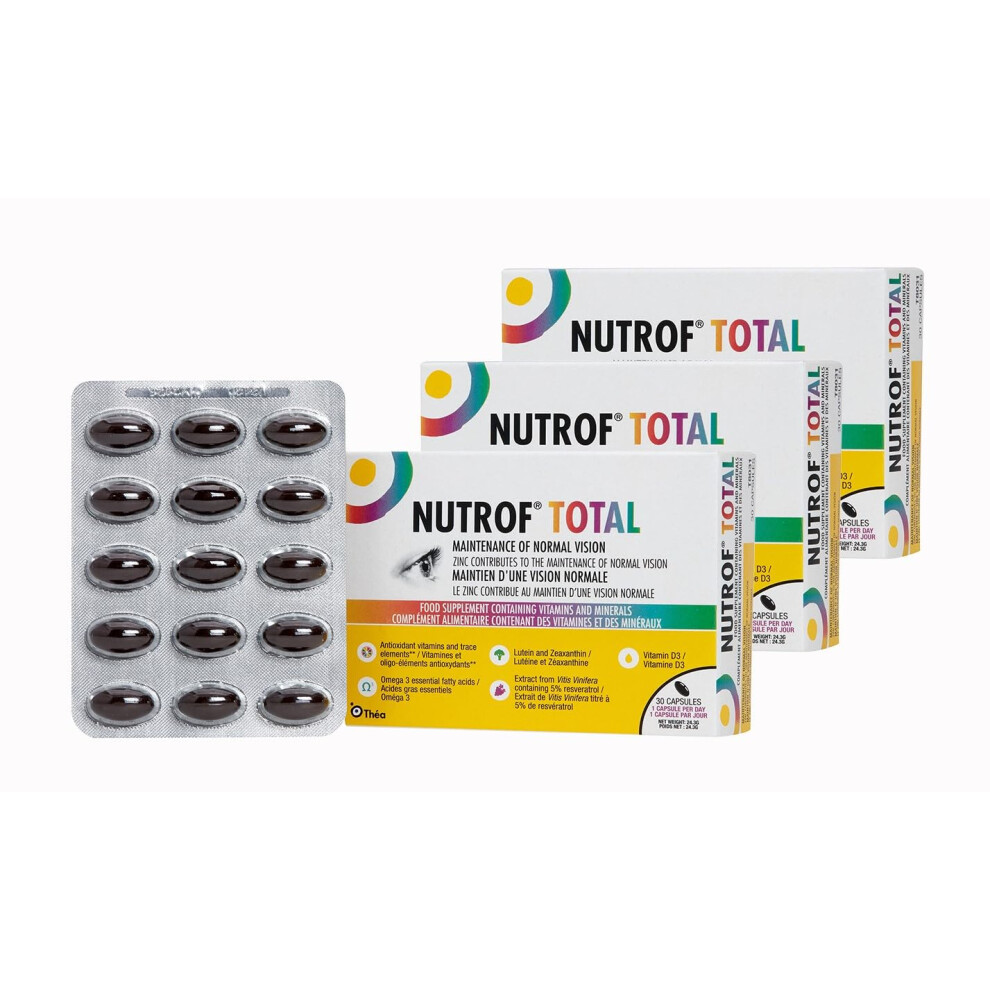 90 Nutrof Total Capsules â Eye Health Supplement with Lutein, Zeaxanthin, Omega 3, and Antioxidants | Daily Dose of Essential Nutrients for Optimal