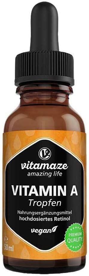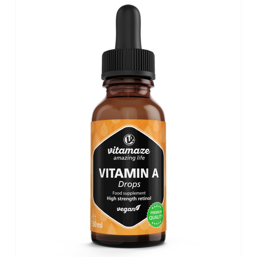 Vitamin A Drops 5000 IU High Strength per Daily Dose, Retinol Liquid & Vegan, 50 ml (1700 Drops), Natural Food