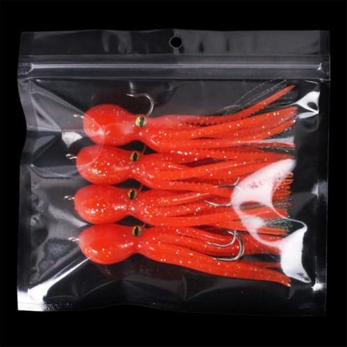 Jotekonoby Soft Bait Squid Skirts Fishing Lure for Saltwater Sea Bass Catfish Black Fish 21g 11cm with Octopus a Assist Hook Rig Silicone Half Dozen Co (Orange)
