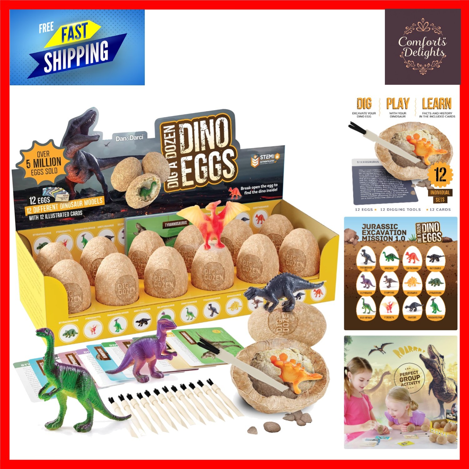 Dig A Dozen Dino Eggs Kit - STEM Dino Excavation Toy for Kids - 12 Surprises!