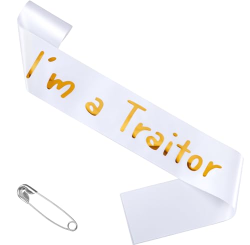 Xuniea I'm a Traitor Sash Traitor Leaving Sash New Job and Sorry Your Leaving Gifts Retirement Presents for Colleagues Women Men Farewell Party Going Away Decorations(White, Gold Letter)
