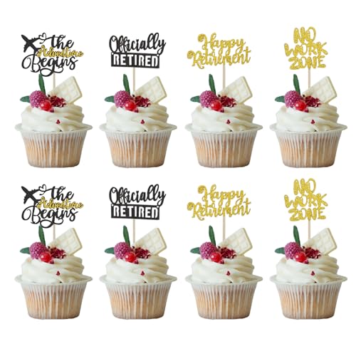 12Pcs Happy Retirement Cupcake Toppers, Black Gold No Work Zone Adventure Begins Cupcake Picks for Retirement Theme Farewell Birthday Party Cake Decorations A8HJTXZBDGCP