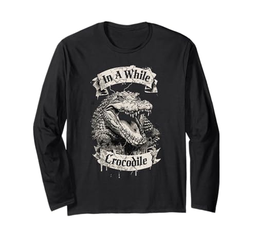 in A While Crocodile – Ink Style Funny Farewell Graphic Long Sleeve T-Shirt