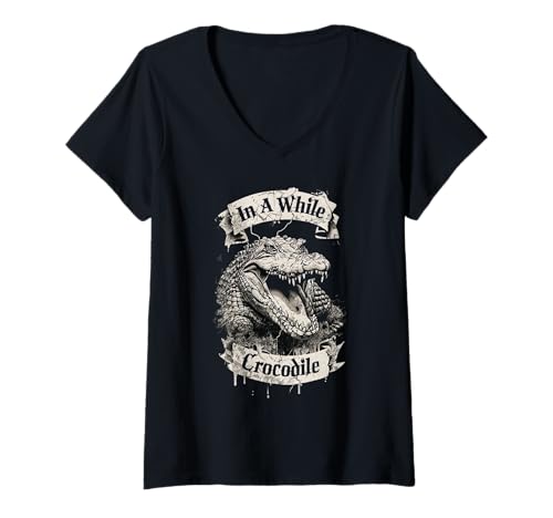 Women's in A While Crocodile – Ink Style Funny Farewell Graphic V-Neck T-Shirt