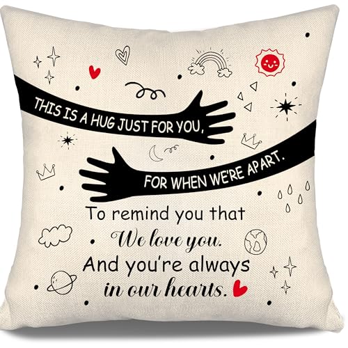 Hug Cushion Covers This Is A Hug Just for You For When We're Apart for Women Men Mum Dad Daughter Auntie Grandma Grandpa Sister Brother Friends Birthday Gift Farewell Gifts (b)
