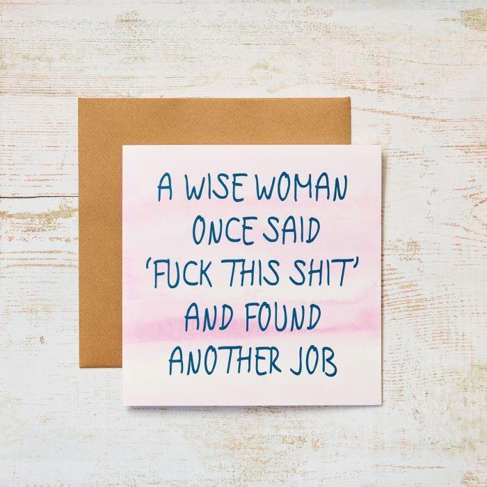 Funny Leaving Card Humor Collague Farewell A Wise Woman Purple Watercolour