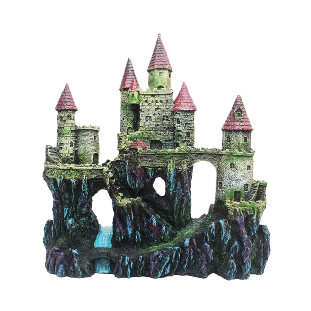 (RQ139A) Resin Charming Fish Tank Castle Decor Ornament For Aquarium Decoration
