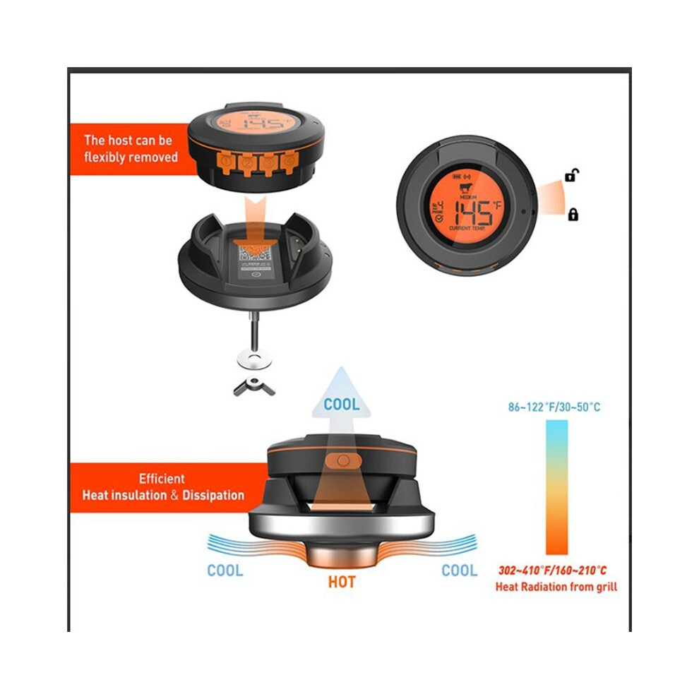 Food Cooking Bluetooth Wireless BBQ Remote Thermometer Probes Smart Digital Bluetooth Barbecue Thermometer(A)