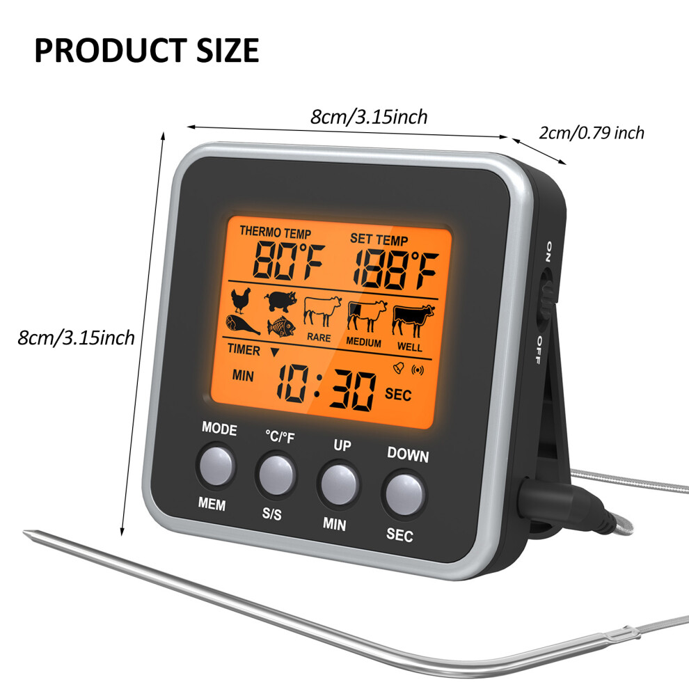 Kitchen Digital CookingThermometer Meat Food Temperature for Oven BBQ Grill Timer Function with Heat Meter for Cooking A