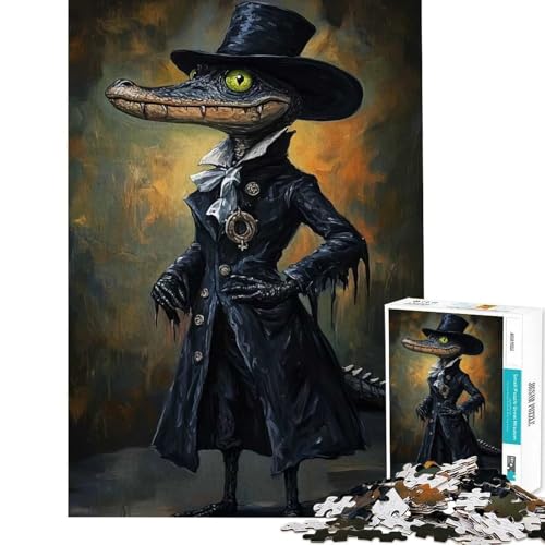 Jigsaw Puzzles for Adults 1000 Piece Dapper Crocodile Gentleman in Black Attire Family Games Brain Intelligence Challenge Addictive Toys Great Gifts A Work of Art (Size 38x52cm)