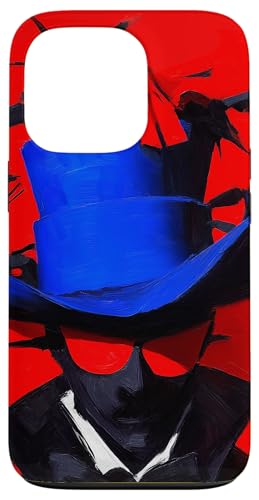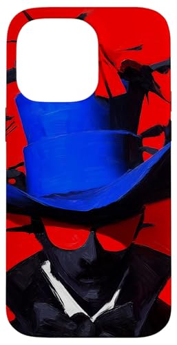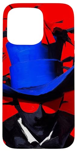 Top-Hatted Mystery Man in Blue & Birds A Dash of Charm & Red Case for iPhone 14 Pro Max