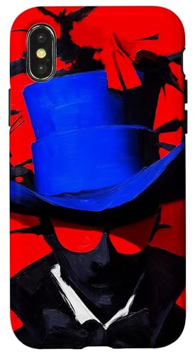 Top-Hatted Mystery Man in Blue & Birds A Dash of Charm & Red Case for iPhone XS Max