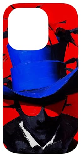 Top-Hatted Mystery Man in Blue & Birds A Dash of Charm & Red Case for iPhone 14 Pro