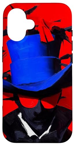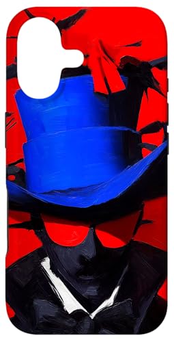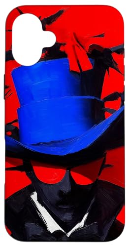 Top-Hatted Mystery Man in Blue & Birds A Dash of Charm & Red Case for iPhone 16