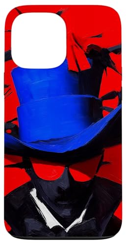 Top-Hatted Mystery Man in Blue & Birds A Dash of Charm & Red Case for iPhone 13 Pro Max