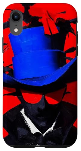 Top-Hatted Mystery Man in Blue & Birds A Dash of Charm & Red Case for iPhone XR