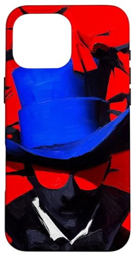 Top-Hatted Mystery Man in Blue & Birds A Dash of Charm & Red Case for iPhone 16 Pro Max