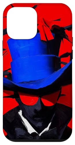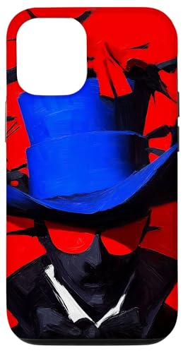 Top-Hatted Mystery Man in Blue & Birds A Dash of Charm & Red Case for iPhone 12/12 Pro