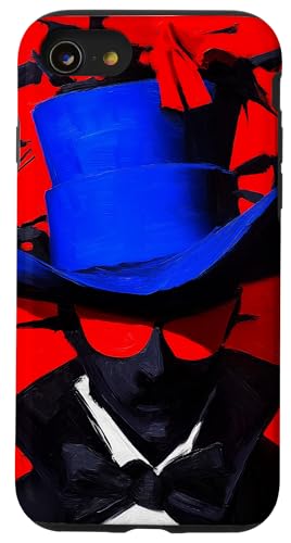 Top-Hatted Mystery Man in Blue & Birds A Dash of Charm & Red Case for iPhone SE (2020) / 7/8