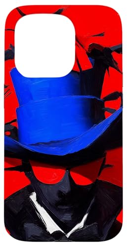 Top-Hatted Mystery Man in Blue & Birds A Dash of Charm & Red Case for iPhone 15 Pro