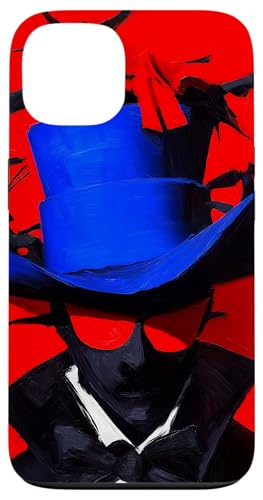 Top-Hatted Mystery Man in Blue & Birds A Dash of Charm & Red Case for iPhone 14